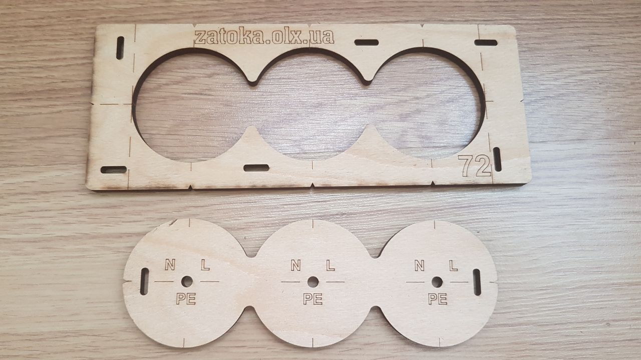 Шаблон выполнен из прочной шлифованной фанеры толщиной 8 мм, предназначен для точного сверления отверстий диаметром 72 мм под подрозетники, для последующей установки подрозетников и затем розеток в каменных, кирпичных, бетонных и гипсокартонных стенах, также используются при плиточных работах при сверлении отверстий в плитке. Отверстия при сверлении через шаблоны получаются ровные и точные, крепления шаблона к стенам производится на дюбеля, саморезы или на скотч, при плиточных работах. Быстрый заказ можно сделать отправив сообщение на вайбер, телеграм, смс или позвонив по номеру телефона +38 098 401 20 57.